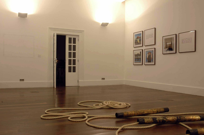 Installation view: Earth Changes part I - IV & The guru. Like Tears in Rain', Palácio das Artes, Fábrica de Talentos, Portugal, 2010. Exhibition essay- Unforgotten Utopias: Sharing the Archive by Gabriella Arrigoni.